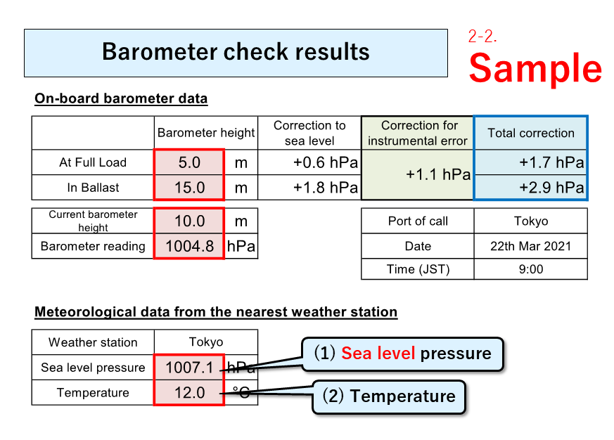 - Use the table to determine sea level pressure and temperature at the time the barometer was read (shown in JST).