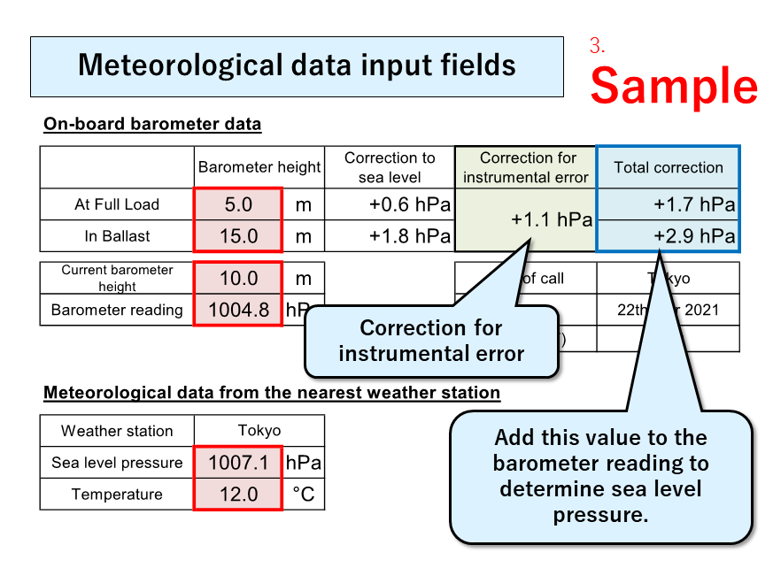 - Add the total of the blue fields to the barometer reading to determine sea level pressure.